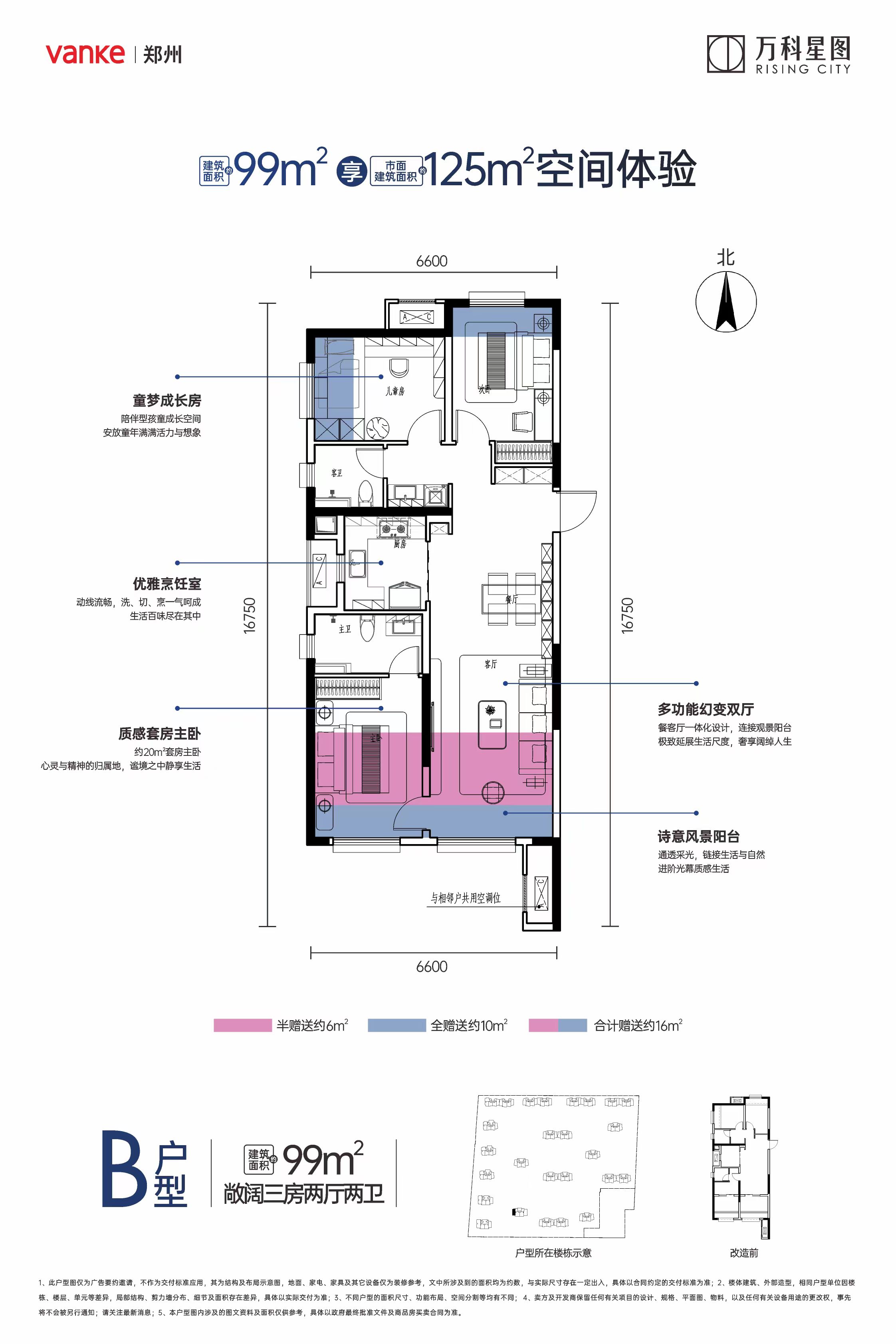 项目外部打造约2.3万方开放式的公共活动公园。内部规划有10个单元架空层,最大约83米开阔楼间距,规划有全场篮球场、约500米环形塑胶跑道、羽毛球场、乒乓球场、打造全龄段社区公共活动空间,带来全新的更舒适的居住体验。